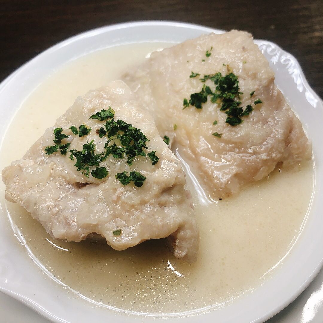 フリカッセは煮込む前にお肉を炒めるお肉が主役になるクリームシチューです。